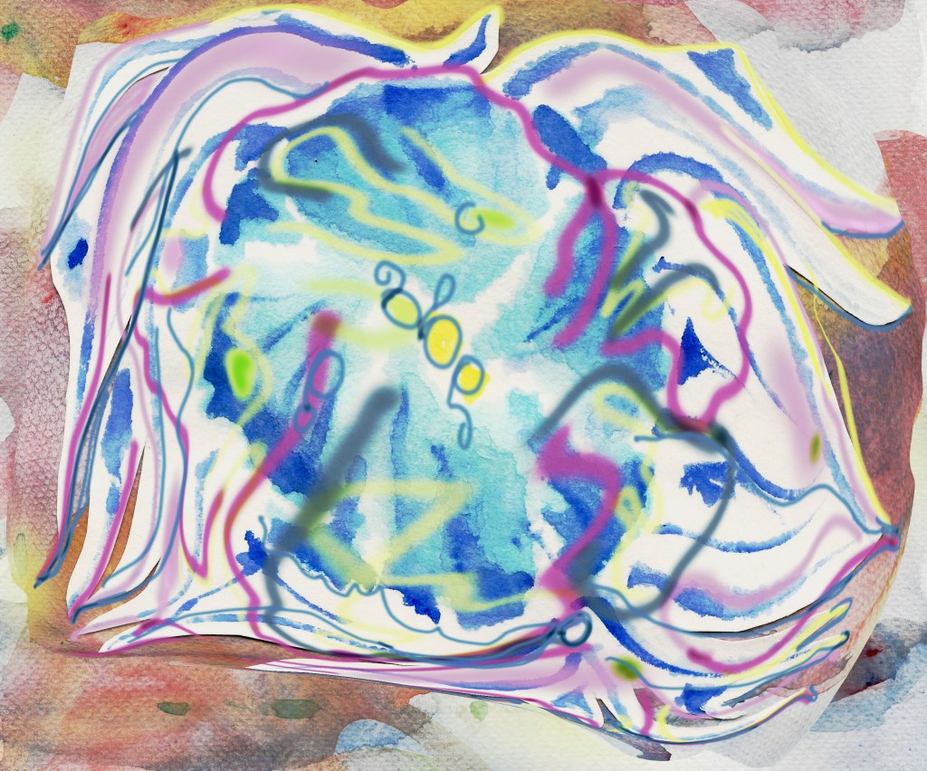 I had to stop because there is only so much you can repaint a watercolor before it becomes dead and muddy and opaque. I will continue this technique on the next painting but perhaps only do one shape. I think I don’t even want to count how many are here. I keep seeing this piece as a six foot painting. Even then it would need a huge space to live in since it’s such a bully and attention grabber. I would love your feedback on this one.
