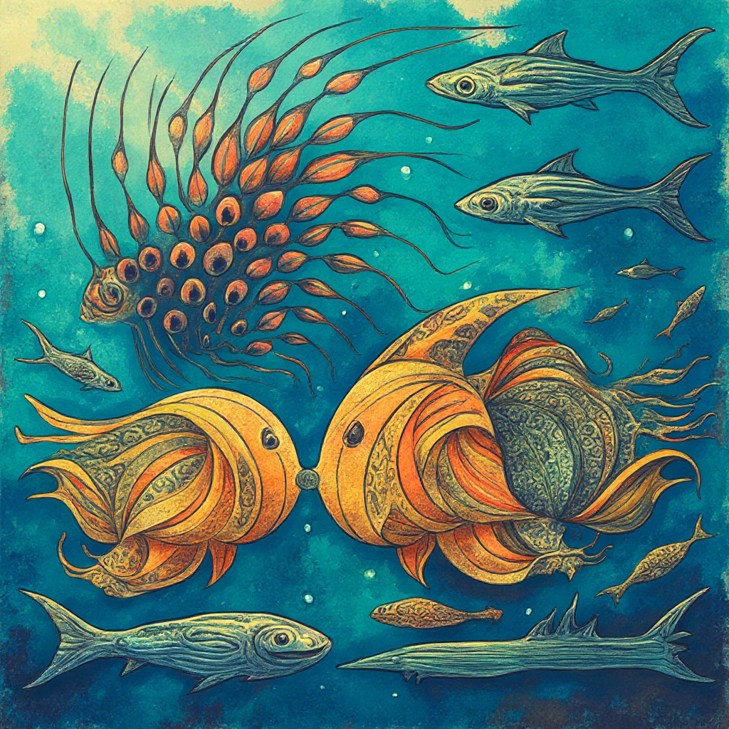 I’ve been playing with fish for a while now. Here is a shot that was made by blending several of my drawings together into an under sea world. I like a lot because I think it asks some questions, which gives the concept a storybook quality. I’m having some trouble generating a video but hopefully that will come soon.