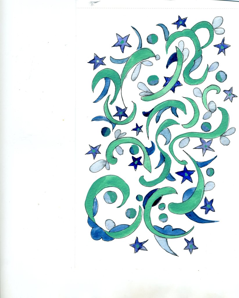 If you look closely, there is an odd set of legs at the bottom of the first two. You might not ever guess they came from this little guy who is a 3rd watercolor, blended into the first 2 images. He’s not a moose at all but I included him in the mix because of the color palette and whimsical nature as a surprise element. So that’s the story of my evolving learning experience today. It’s about having fun with art and whimsical images. I think of it like cooking. The last element is the unidentiful spice that makes the dish amazing.