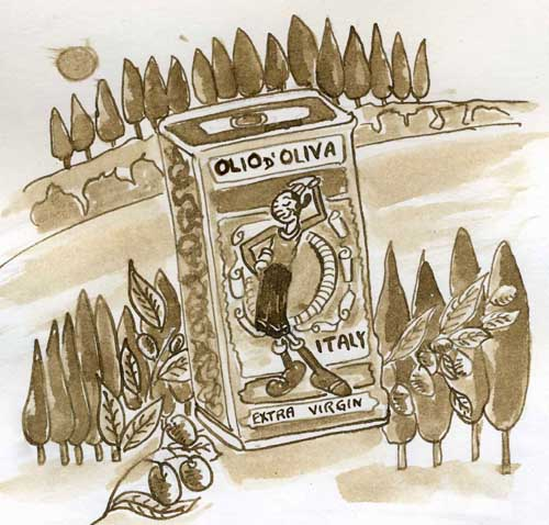 This is a pen and ink wash drawing from a long time ago. Done with walnut ink and simple dip pen nib. I’m posting this to put a smile on somebody’s face if possible. Aren’t you just sick and tired of this sad world some days? Anyway, here she is in all her glory going to a famous cooking school in Tuscany. She believes she can turn a new leaf. What do you think?