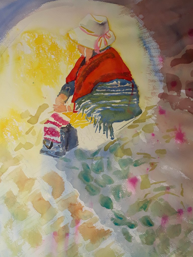 Wow. Look at that personality change. I went through 3 or 4 versions of the fishy suit and decided on this one. I gave the suit a leathery texture and that gave his face a grainy texture as well. Here my Yupo background is very subtle. To my eye it compliments and looks a but moody and mysterious. What a dapper guy. Would you trust him? So I hope you can see that you can create your own backgrounds. They are important because they are individually YOU!