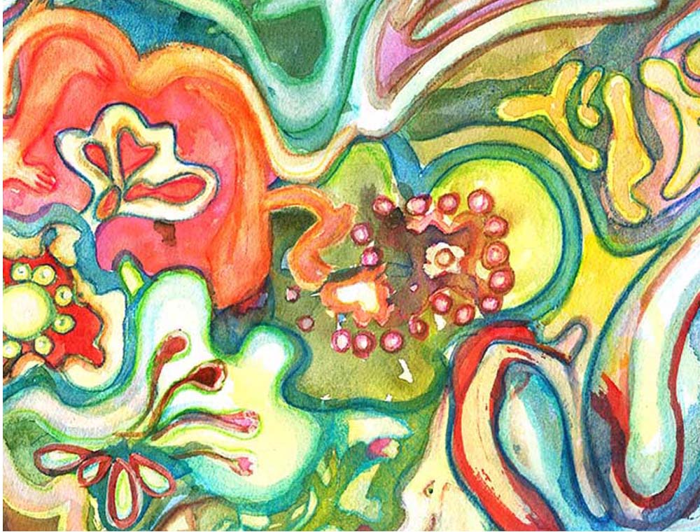 I don’t know why, but I gravitate to this watercolor. I love to see it super big but I think it looks good small also, like a little jewel. There is something about it that is mysterious. I give up on why I’m attracted to it. Maybe it’s whimsical and I think that says it all.