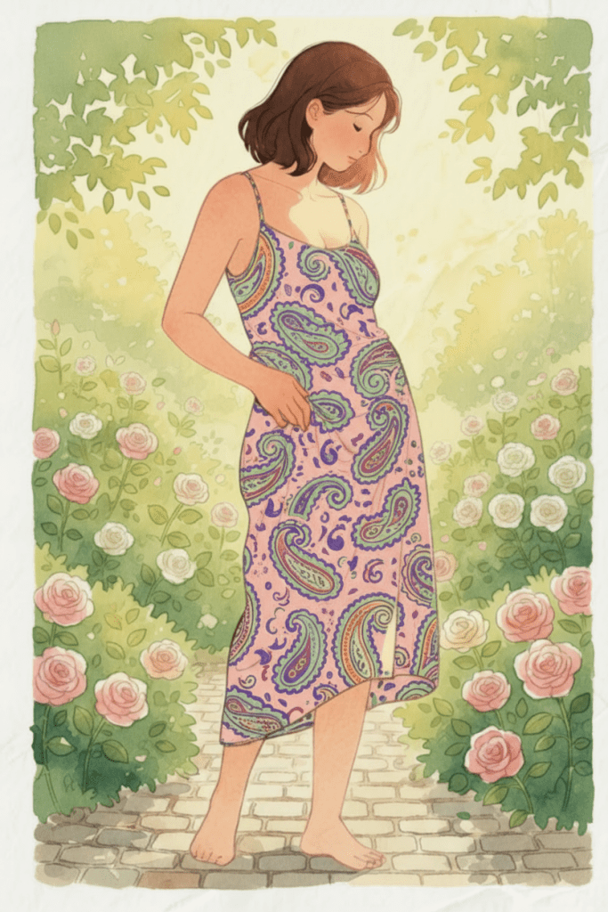 4 Next I asked if they could put the illustration design on her dress. So I made up a name and called it the “paisley design”.