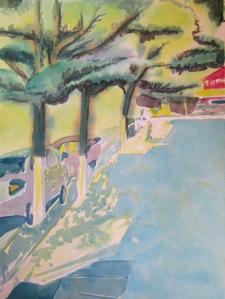 This palette makes an amazing difference. Here is the first stage of a street scene done in granulating and mixing colors. Already I can see a complete transformation of how I work. It’s pretty cool and encouraging to make a change and actually see a difference.